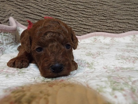 | コメント | 父親・・・レッド 母親・・・レッド・クルクル毛 可愛いお顔の濃いいレッドの5姉弟が誕生しました! まだ目が開いたばかりで、つぶらな瞳ですが、成長と共に、大きく可愛いくなってきます。 ママのオッパイを飲んで元気に育っています。 生後45日で、初回ワクチン接種(5種混合)、健康診断、検便など 獣医でしてからのお渡しになります。 仔犬代金には、初回ワクチン代、血統書代など全て込みのお値段です。 見学大歓迎! 今なら血統書名に呼び名をお付け致します。 ご質問などお気軽にお問合せ下さい。 宜しくお願い致します。 |