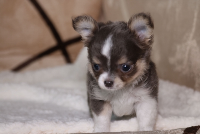 チワワ(ロング) ブル―タン&ホワイト ♀(女の子) 福岡県【 ブリーダーズ 】