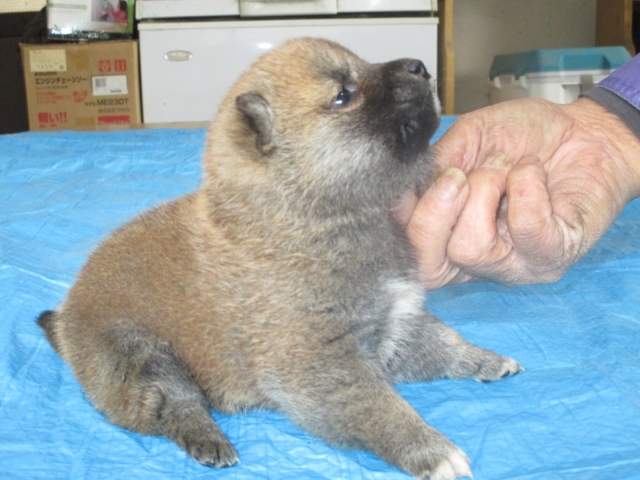 初めて見学で伺った際に、並んで日向ぼっこをしている親犬たちを見て、その時点で高橋さんなら安心だと感じました。事前に希望していたこともあり、母犬と父犬を先に見せていただきましたが、母犬のあまりの人懐こい性格にやられてしまい、実は子犬を見る前に是非譲っていただこうという気持ちになっておりました。 見学の時、譲渡の時といろいろな話をさせてもらい、小さな気付きなども折り込んで教えてもらえるのでやはり柴犬ならこうした専門の方が信頼出来ます。 子犬が我が家に来て二週間が経ち、きょうだいのなかでも一回り小さかったこともあり、やはり成長もやや遅い感じではありますが、母性を刺激された先住犬が頑張って見守ってくれており、予想外ではあるものの家族全員一安心です。 この度は本当にありがとうございました。この子が幸せになれるよう精一杯向き合っていきます。 なお、今後検討されている方への注意事項をひとつだけ書いておきます。問い合わせや見学希望に対しての高橋さんからの返信は電話です。メールでの返信ではありませんので気を付けてください。(宮城県 男性)