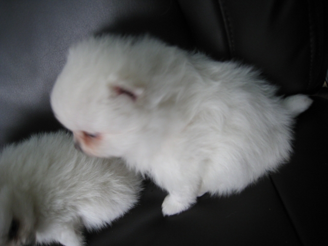 | コメント | 小柄な両親から生まれたふわふわの真っ白の被毛が可愛い 男の子。 おとなしい両親に似て飼いやすいと思います。 小さいが骨量もありとても健康です。 |