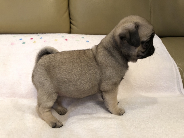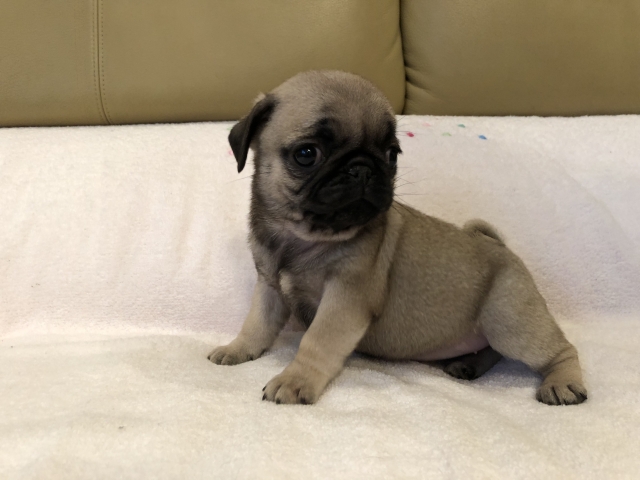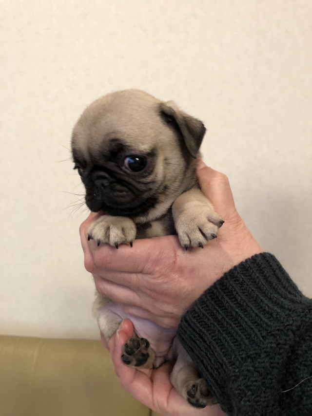 パグの飼育歴は30年以上になります。今年親の代から買っていた 黒パグを亡くしてから家を埋め尽くしているパググッズを見るたびに いつか新しい仔を迎えたいと思うようになりました。 北関東でブリーダーさんを探しているうちに木村様を知り、見学、購入の運びとなりました。 このたび性格も大変おおらかな素晴らしい仔犬をお譲りいただき大変感謝しております。 (茨城県 男性)
