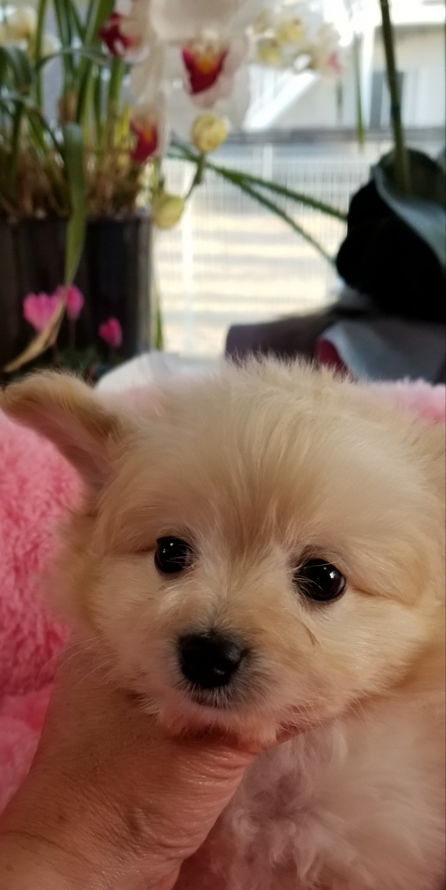白のポメラニアンを本日お迎え致しました。生後40日前後で子犬を拝見させて頂いた時にブリーダー様の犬愛を知り、迎えるまでの20日間、安心して過ごせました! 途中で、ムービを送って頂き、成長過程を実感できた事、感謝しています。アドバイスも、丁寧に教えて頂きました。(東京都 男性)