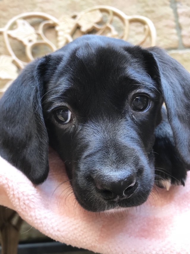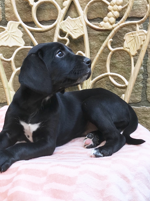 雑種犬(ミックス犬) 黒 胸に白毛 黒の水玉 ♀(女の子) 神奈川県【 ブリーダーズ 】