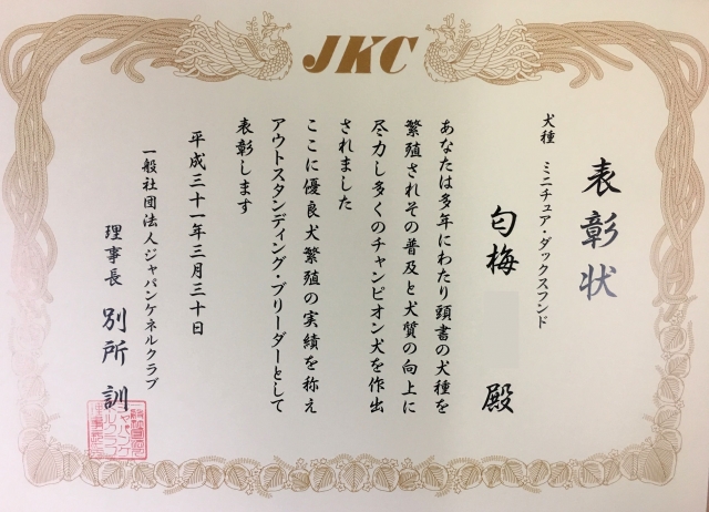 色々とご無理を言っても親切に対応して頂きました。ドッグショーなどで忙しいなかでも、返事をくださり大変ありがたく思います。やっと仔犬が家族の一員なりとても嬉しく思います。ダックスを購入されたい方おすすめしたいです。(兵庫県 男性)
