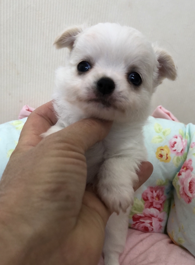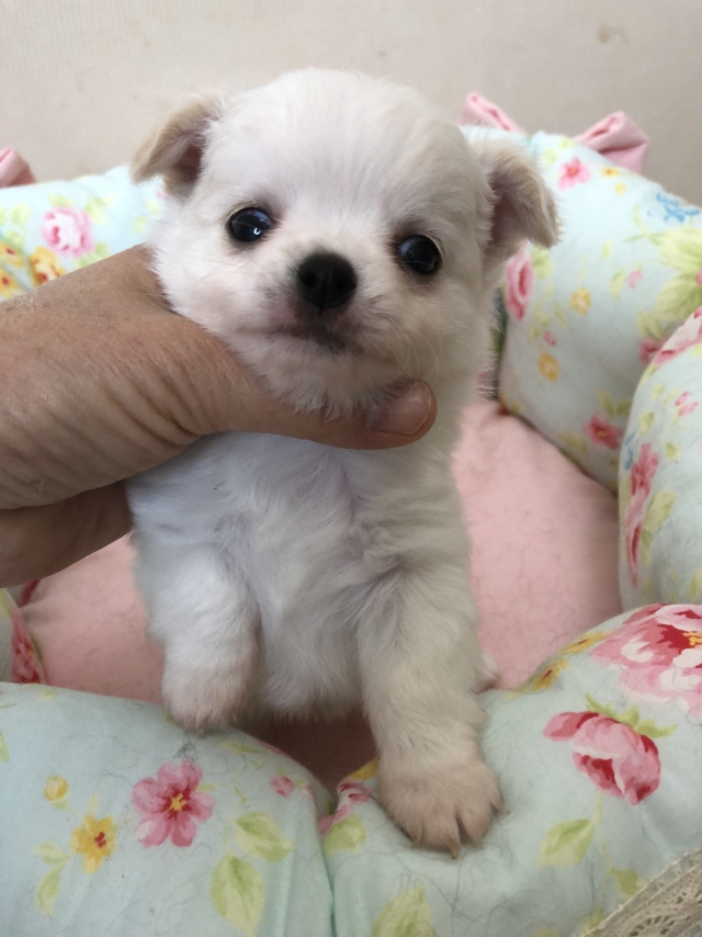 | コメント | ホワイト系のもふもふな女の子です。 ちょっと緊張気味な表情になってしまいましたが、大体実物っぽく撮れたと思います。 離乳も順調に進んでおり、とっても元気に成長中です。 性格はとっても明るくて尻尾フリフリ。 人も犬も大好きで飼育しやすい性格の子に成長中です。 4/12現在、フリーの状態でも自分から進んでおトイレでオシッコ出来るとても賢い子です。 未だ失敗知らずなのには感心します。 パパはチャンピオン直子の2㎏のイケメン男子。 我が家のパパでダントツ人気のマイクです。 ママは1.8㎏の小雪ちゃん。 純白な真っ白コートが自慢の人懐こい女の子です。 この子も両親程度のサイズの予想です。 当方では性格の悪い(シャイ、ビビりさんなど)親犬は一切繁殖には使っておりません。 親犬はどの子も明るくて人懐こい性格のたいへん良い子です。 ですのでオーナー様方から躾も大変しやすいと好評です。 親犬の性格は子犬に遺伝します。 躾が入りやすく飼育しやすい、ペットとして皆様が楽しく暮らせるような、そして連れて歩いて自慢できるような犬質の高い子犬をお譲りできるよう、ドッグショーに出陳し犬質を確かめながら日々努力しています。 当方のブログやInstagramにはたくさんの画像や動画を掲載しています。 こちらにも動画が載せられるようですが、載せ方がわかりませんので申し訳ありません。 ☆ご見学可能です。 実物のベビーは画像よりもはるかに可愛いです。 画像や動画は私のカメラの腕が悪いようで、やはり実物よりもはるかに劣ります。(いつもご見学時にお客様から言われます…笑) ですので実物をご覧になってからゆっくりとご検討くださいませ☆ 遠方からのお客様が大変多くゆっくりとご覧になっていただきたいため、ご見学は一日一件とさせていただいております。 現在ベビーラッシュにつき、週末のご見学のご見学が大変多いですので、週末をご希望の方はお早めにご予約くださいませ。 ☆お引き渡しはGW後半ごろから可能です。 遠方の方もお気軽にお問い合わせください。 家族の一員として生涯大切に飼育してくださる方とご縁があると嬉しいです。 ☆我が家のチワワは体の小さな子が多いため、小学3年生以下のお子様がいらっしゃるご家庭にはお譲りできません。 小さな命を守るためですのでご理解いただけましたら嬉しく思います。 |
