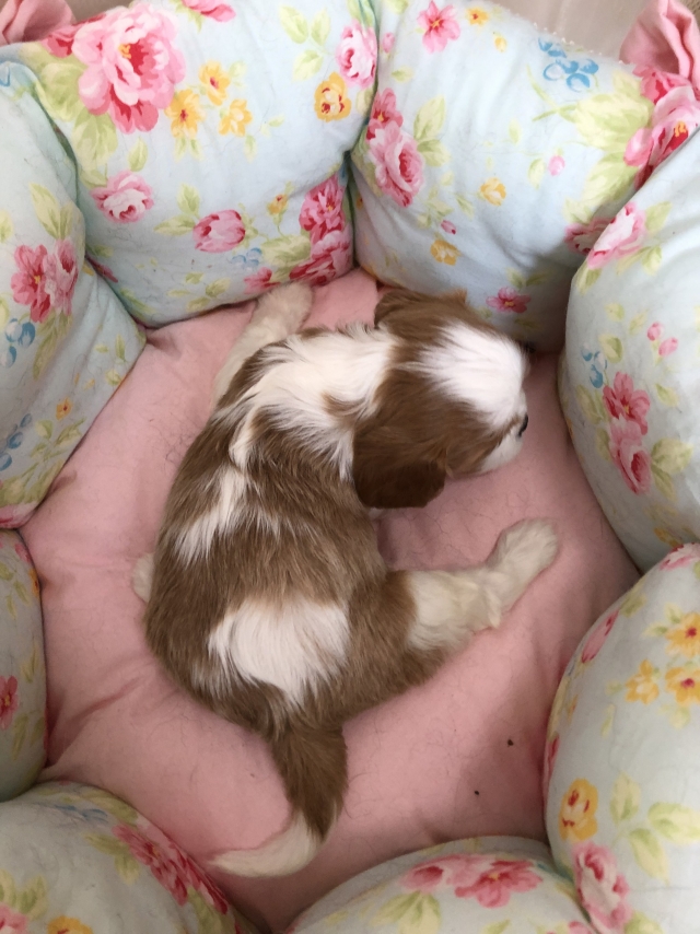 愛情を込めて大切に育てておられる、とても信頼のできるブリーダーさんです。初めて犬を飼育するので不安もありましたが、飼育やしつけ方法だけでなく、子犬の健康面や今後起こりうる可能性のある病気の話まで大変詳しく教えて下さいました。有り難いのは、こちらから尋ねなくてもお話くださる所でした。とてもオープンなのでこちらも安心して子犬(キャバリア)を引き取る事ができました。大阪へ帰る新幹線の中でもずっと大人しく遠方だからと諦めずに良かったと思いました。個体差もあるかも知れませんが、引き取ったキャバリアちゃんは、夜泣きも朝泣きもするとこなく穏やかに過ごせる子なので、生まれた時から大事に育てられた賜物では無いかな、と思いました。(大阪府 女性)
