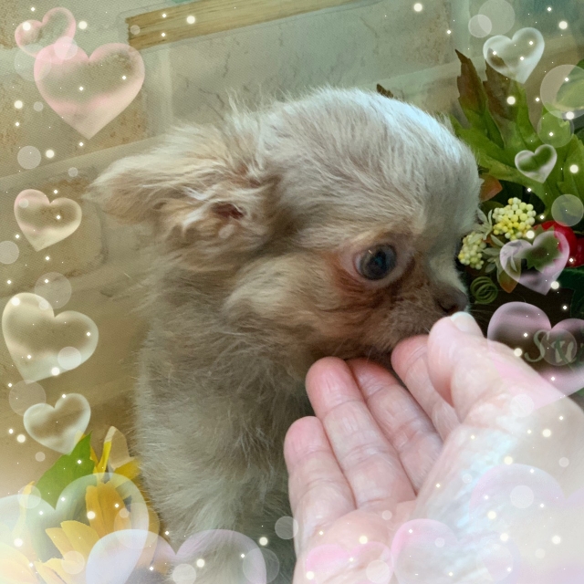 チワワは初めて飼うので、小さすぎて不安もかなりあったのですが、その不安を払拭していただけるくらいのサポートもありますし、かなり心強く、信頼出来るブリーダーさんです。次にお願いする時も、ぜひ同じブリーダーさんにお願いしようと思います(*^^*)(岡山県 女性)