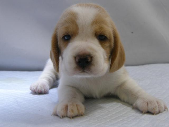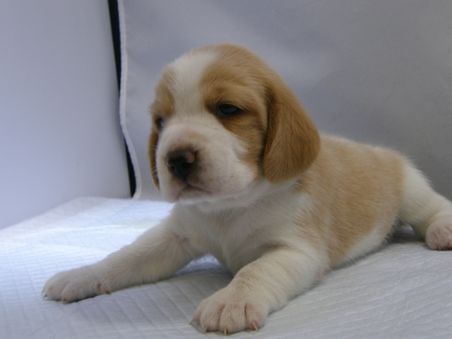 | コメント | 父犬ハウンドカラー、母犬レモン&ホワイトから生まれたレモン&ホワイトの女の子です。 とても優しい顔をした女の子になりました。 まだまだ小さいので性格などは把握できませんが これからドンドン大きくなり個性がでてきます。 少し神経質な子かもしれませんが、何とも言えない癒し系の顔です。 食欲もあり順調に成長しています。 見学はいつでもできますのでお問い合わせください。 見学の時間帯は13:00~17:00頃までです。 よろしくお願いします。 |