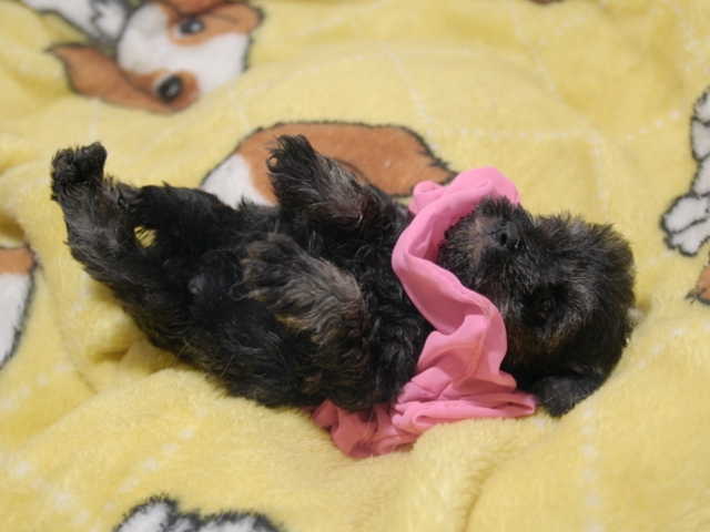 この度はとっても元気な子をありがとうございました。 見学の際は駅まで迎えにきていただき、説明もとても丁寧で安心しました。 空輸で送っていただき、ありがとうございました。 迎えてから一週間が経ち、家にも慣れて、へそ天で寝ています。 トイレトレーニングも、来た時から8割できていて、今ではほとんど失敗しなくなりました。 可愛く元気で、毎日元気に飛び跳ねています。(奈良県 女性)