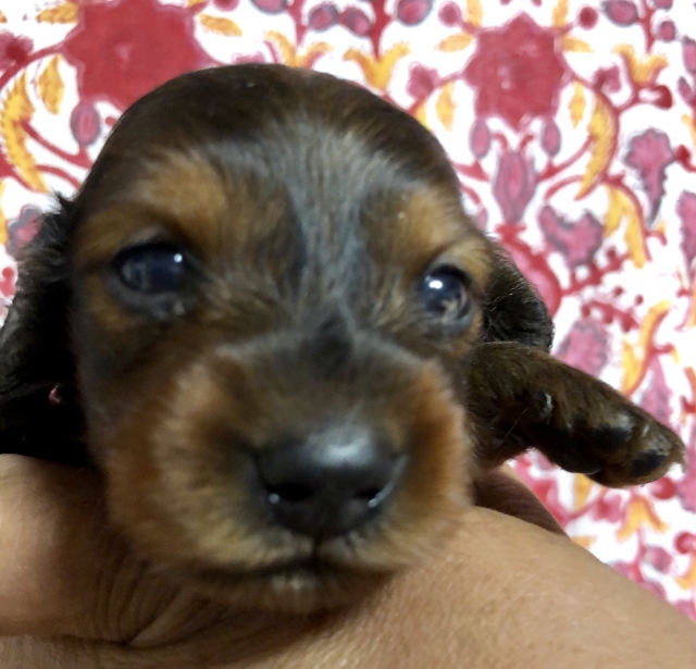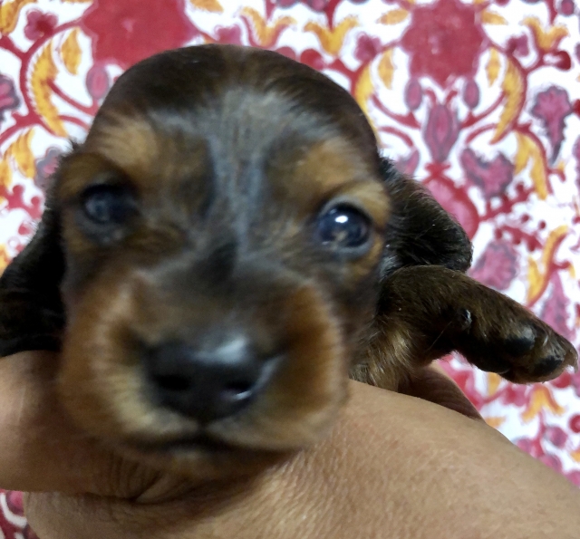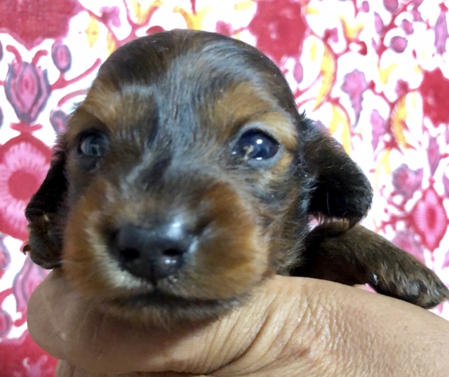 現在カニヘンダックスを飼っており、この度2頭目が欲しいと思っていたところ、細田様の子犬が目に留まりました。以前よりドイツダックスに興味があり、実際お宅に伺って直接子犬また両親犬を見ることができその毛色の素晴らしさに感動しました。またお話しを伺い犬に対する強い思い、深い愛情を持って育てられている事が感じられましたので、その場で即決譲渡させて頂くことになりました。 また、『もし何かありましたら24時間いつでも御連絡下さい』と… 子犬は健康的で元気一杯、人懐っこい性格でした。 ドイツダックスに興味のある方 おすすめのブリーダーさんです!(静岡県 男性)