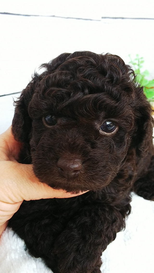 | コメント | ★★★綺麗なブラウン男の子★★★ ブラウンには特に力をいれていますので お鼻もピンクではなく、ビターチョコで 色素も濃い子です。 ママ☆ブラウン3.3キロ パパ☆ブラウン1.9キロ 1人っ子ですのでミルク飲み放題で 現在は、コロコロしています。 1人っ子特有ですが、競うことを知らないので おっとりとしたマイペースな可愛い子です。 毛量も、凄くありますので将来のカットも 楽しんでいただけます。 PRA発症しません。 3キロ~3.5キロぐらいの予想です。 ゴールデンウィーク中の見学も可能です。 *見学予約は、お早めにお知らせ下さい。 |