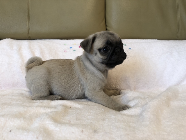 パグの飼育歴は30年以上になります。今年親の代から買っていた 黒パグを亡くしてから家を埋め尽くしているパググッズを見るたびに いつか新しい仔を迎えたいと思うようになりました。 北関東でブリーダーさんを探しているうちに木村様を知り、見学、購入の運びとなりました。 このたび性格も大変おおらかな素晴らしい仔犬をお譲りいただき大変感謝しております。 (茨城県 男性)