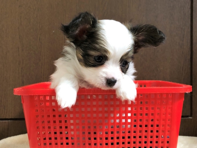 パピヨン ホワイト&セーブル ♂(男の子) 愛知県【 ブリーダーズ 】