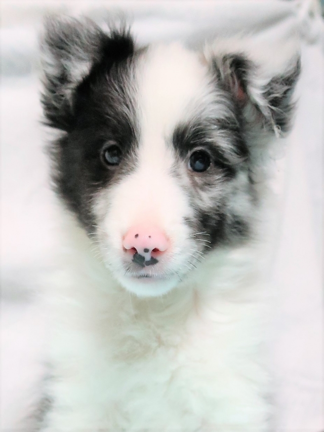 ネットブリーダーズを拝見し、バイブルーで青い目の子犬「銀くん」に一目ぼれしました。また、平山ブリーダー様の口コミがとても良かったこともあり、不安なく連絡をさせていただきました。お問い合わせ後すぐに丁寧な返信をいただき、見学の日程もスムーズに決まりました。 実際に伺うと、かわいいたくさんのシェルティちゃん達に迎えられ、たくさんの質問にも丁寧に答えてくださり、大変安心しました。お迎えした銀くんは、最初の1日はおとなしく心配になるほどでしたが、2日目からは甘えたり鳴いたりと元気を取り戻し、とても可愛い姿を見せてくれています。 平山ブリーダー様の元で大切に育てられてきたことがよく分かり、銀くんをお迎えできて心から良かったと思っています。 素敵なご縁をありがとうございました。(福島県 女性)