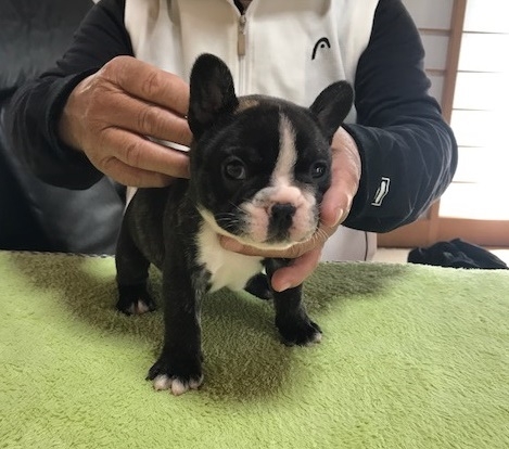 掲載されていた仔犬が可愛らしく見学を希望、西村さんよりすぐご連絡頂きました。見学に行った時には仔犬だけじゃぁ無く親犬や他の仔犬など沢山のフレンチにふれ合い、とても気さくな西村さんとお話ししていて幸せなひと時でした。帰りは近くの高速の入り口まで案内して頂きました。我が家に迎え入れて数日経ちますが元気で愛くるしくってたまらないです。(大阪府 女性)