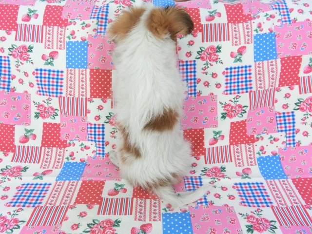 名古屋からお迎えしました。チワワちゃんを亡くし途方に暮れていた中ミックスの子迎えました。帰りの新幹線でもお利口でした。お迎えまで1ヵ月ありましたがしっかりと配慮の行き届いた対応して頂きました。預かっているあいだに社会性を学んだみたいで初日から一通り出来ました。歴史のあるブリーダ-ならではの安心です。待っているあいだも写真や動画送って下さり名前で読んで下さり初日から自分の名前わかっているかのようです。とても健康で生きがよく愛嬌最大限です。ミックスなのでどのように育つかわからないところが育てがいがあります。ご飯ももりもり食べてうんちもしっかりしています。こんな可愛く健康な仔犬をお譲り下さり感謝致します。こんなに丁寧で細部まで至れり尽くせりですみません。安心して共に暮らしていけます。この度は本当にありがとうございました。(愛知県 男性)