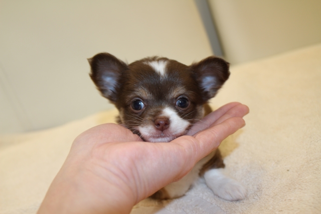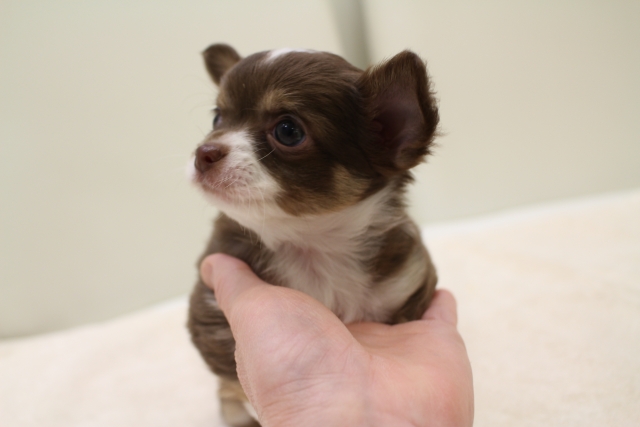 チワワ(ロング) チョコレートタン&ホワイト ♂(男の子) 東京都【 ブリーダーズ 】