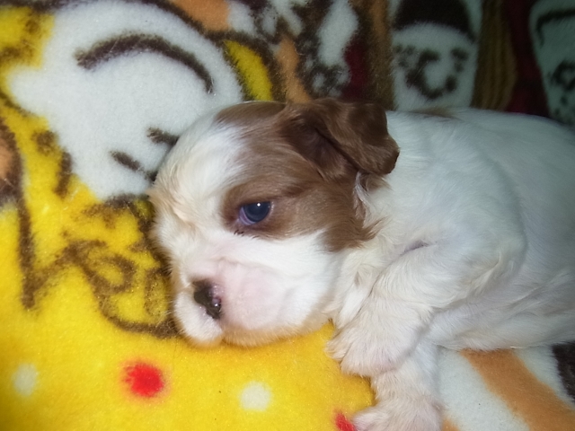 橋本さんはキャバリアのプロでとても冗談大好きで初めての電話の際から毎回楽しくお話させていただきました。待望のお迎えの際も先輩キャバリアちゃんたちが賑やかに迎えてくれて(キャバリア祭り笑)、子犬のパパママにも会わせていただき感激しました。ちなみに橋本さんちのキャバリアちゃんたちはみんな美男美女でかわいい子ばっかりです。橋本さんの優しくキャバ愛溢れるお人柄も決め手にもなりました。子犬は夜鳴きもせず当日から元気いっぱいで毎日おてんば発揮してます笑、これからもずっと大切に育てていきます!また子犬が落ち着きましたら橋本さんとキャバちゃんたちに会いに素敵な尾道に里帰りさせてもらいたいなぁと企んでおります笑、本当にありがとうございました! (京都府 女性)