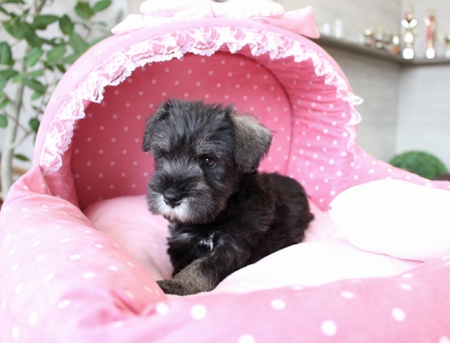 シュナウザーを主力にされているブリーダーさんだと認識しており、ボスちゃんはどうかなあと正直不安でしたがとても可愛く健康的なボスちゃんをいただきました。 掲載されていた写真より実物は想像以上に可愛くて即決し見学させていただいたその日に連れて帰りました。連絡をして、翌日行きますぅって勝手な申し出にも関わらず敏速かつ親切に対応して頂き大満足です。契約に対しても一つ一つ丁寧に説明してくださり、わかりやすかったです。この度は可愛いボスちゃんとのご縁をいただき、本当に有り難うございました。 (大阪府 女性)
