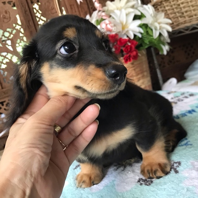 申込から受け取りまでほぼ毎日、仔犬の写真、動画、報告を送って下さいました。縁あって我が家にやって来たのはそれはそれは可愛いい、真にダックスらしく好奇心にあふれ、跳ねまわるほどの元気な仔犬です。大切に育ててくれたに違いありません。このサイトで榎田ブリーダー様に出会って、そして我が家のお姫様に出会えました。ブリーダーズ事務局様、榎田ブリーダー様にも実に細やかな配慮を頂き、感謝で一杯です。有難う御座いました。(北海道 女性)
