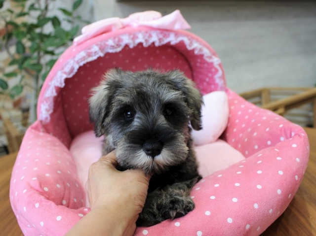 シュナウザーを主力にされているブリーダーさんだと認識しており、ボスちゃんはどうかなあと正直不安でしたがとても可愛く健康的なボスちゃんをいただきました。 掲載されていた写真より実物は想像以上に可愛くて即決し見学させていただいたその日に連れて帰りました。連絡をして、翌日行きますぅって勝手な申し出にも関わらず敏速かつ親切に対応して頂き大満足です。契約に対しても一つ一つ丁寧に説明してくださり、わかりやすかったです。この度は可愛いボスちゃんとのご縁をいただき、本当に有り難うございました。 (大阪府 女性)
