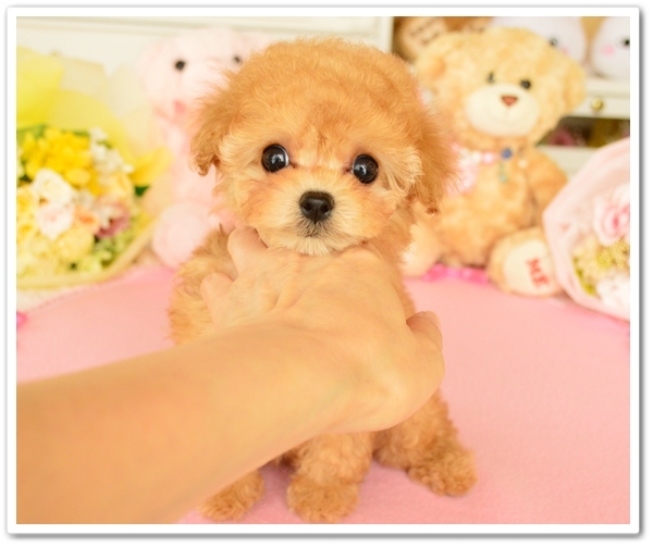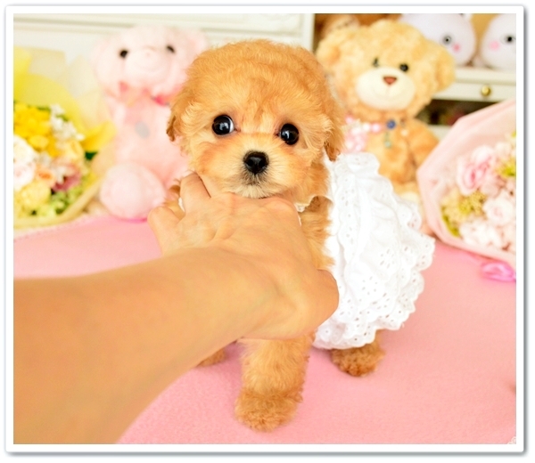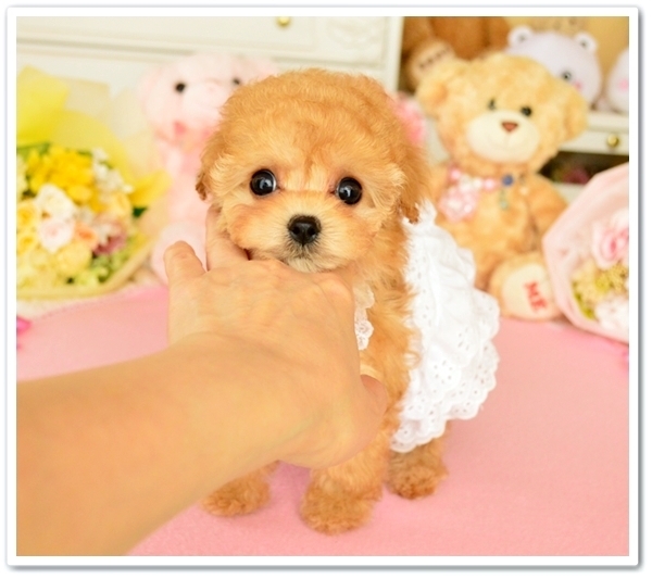 | コメント | ☆☆.。.:*・゜*:.。.超激カワ!特大おめめのちびちびアプリちゃん.。.:*・゜*:.。.☆☆ 大きな大きなクリックリのまん丸おめめ 色素が大変濃くアイラインもくっきり 目ヂカラのある漆黒の瞳が可愛さをさらに引き立たせます マズルがとても詰まっていてお鼻が下がっていないので 将来はベビーフェイスの激カワちゃんになること間違いなし!! 毛色は明るめのアプリコットまたはクリーム 性格は明るく元気でフレンドリー 人間大好き・わんこ大好きの甘えたさん ♥画像で見るよりもおめめが大きくてとても可愛いお顔ですヨ♥ ~~成犬時はティーカップサイズを予想します~~ パパ1.8キロ、ママ2.6キロです 健康診断の結果、現時点で欠点異常ございません ワクチン接種済み PRA発症いたしません 東北自動車道水沢ICより15分、奥州スマートICより5分 東北新幹線水沢江刺駅から20分ですので ぜひご見学にいらしてください また、東京駅までの新幹線各駅出張いたします その際の出張費(新幹線代の半額と人件費5,000円)は お客様にご負担いただいておりますので ご理解いただきますよう、よろしくお願いいたします 東京以南のお客様には対面代行者にてご見学いただけますので お気軽にお問い合わせくださいませ よいご縁がございますように*:.。.☆☆.。.:*・゜*:.。.☆☆ |
