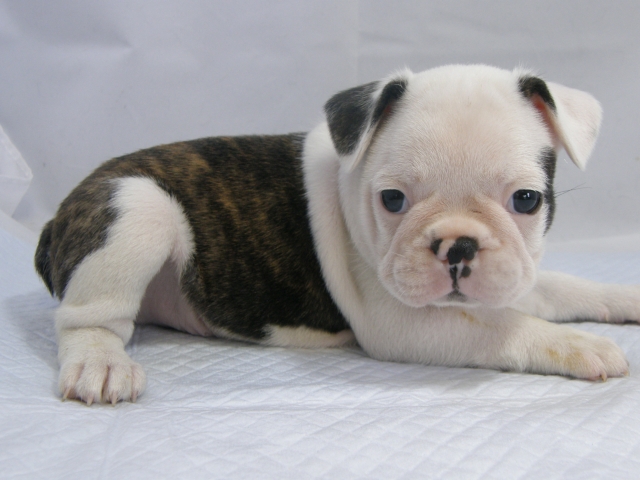 | コメント | 父犬ボストンテリア、母犬ブリンドルのフレンチブルドッグから生まれた ボストンカラーのミックスの男の子です。 何とも言えない癒し系の顔をした男の子です。 性格も少し甘えん坊ですが、顔のようにおっとりしています。 食欲もあり順調に成長しています。 見学はいつでもできますのでお問い合わせください。 なお、父犬のボストンテリアは在犬ではありませんので 写真のみの見学となりますので予めご了承ください。 |
