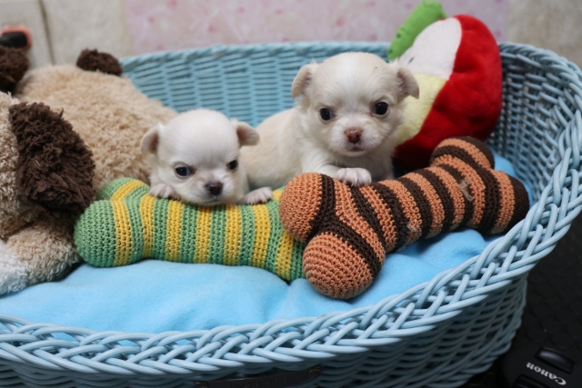 | コメント | お父さん『もっくん』君。クリーム&ゴールドのイケメン君! しかも、PRAクリアー!!2㌔! お母さん『ゆり』ちゃん、クリームの女の子!しかも1.9㌔! 2㌔以内の小さなチワワちゃんになりますよ! 皆様からのお問い合わせ、ご見学心よりお待ちしています! 質問などお気軽にしてくださいね。 大阪市 濱田 |