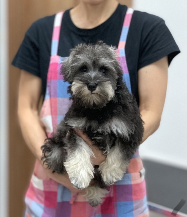 シュナウザーを主力にされているブリーダーさんだと認識しており、ボスちゃんはどうかなあと正直不安でしたがとても可愛く健康的なボスちゃんをいただきました。 掲載されていた写真より実物は想像以上に可愛くて即決し見学させていただいたその日に連れて帰りました。連絡をして、翌日行きますぅって勝手な申し出にも関わらず敏速かつ親切に対応して頂き大満足です。契約に対しても一つ一つ丁寧に説明してくださり、わかりやすかったです。この度は可愛いボスちゃんとのご縁をいただき、本当に有り難うございました。 (大阪府 女性)
