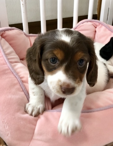 ミニチュア・ダックスフンド(ロング) チョコレートタン パイボールド ♂(男の子) 神奈川県【 ブリーダーズ 】
