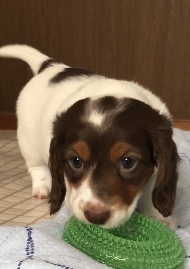 前からミニチュアダックスがほしくて、いろいろさがしていました。 インターネットで、リオンをみて、ほしくなりました。ひと目ぼれしてしまいました。 ブリーダーさんで買うのは、はじめてだったので少し不安もありましたが、高井ブリーダーさんは、いろんな質問も丁寧におしえていただきまして、とっても、こちらの不安もなくなりました。 この先もリオンを大事に育てていきたいと思います。 ありがとうございました。(千葉県 女性)