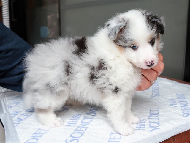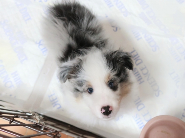 ネットブリーダーズを拝見し、バイブルーで青い目の子犬「銀くん」に一目ぼれしました。また、平山ブリーダー様の口コミがとても良かったこともあり、不安なく連絡をさせていただきました。お問い合わせ後すぐに丁寧な返信をいただき、見学の日程もスムーズに決まりました。 実際に伺うと、かわいいたくさんのシェルティちゃん達に迎えられ、たくさんの質問にも丁寧に答えてくださり、大変安心しました。お迎えした銀くんは、最初の1日はおとなしく心配になるほどでしたが、2日目からは甘えたり鳴いたりと元気を取り戻し、とても可愛い姿を見せてくれています。 平山ブリーダー様の元で大切に育てられてきたことがよく分かり、銀くんをお迎えできて心から良かったと思っています。 素敵なご縁をありがとうございました。(福島県 女性)