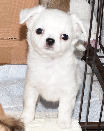 | コメント | 耳はこれから立ちます 体重は 888g(6/3現在 生後60日目) 今後の成長が楽しみな子です 父親系:祖・曾祖父はJKCチャンピオン アメリカ・INTチャンピオンは2頭 JKCチャンピオンは5頭 《父親の血統書より》 母親系:祖母はアメリカチャンピオン直子(父親は全米NO.1。ロスで開催されたナショナル展にて BISS受賞・・・<その展覧会に出陳した全ての犬種のNO.1>チワワ史上初めての快挙です) (その他沢山のアメリカ・カナダチャンピオンの血統が入ってます) 祖父・曾祖母はJKCチャンピオン アメリカチャンピオンは1頭 JKCチャンピオンは5頭 《母親の血統書より》 現在欠点はありません。 |