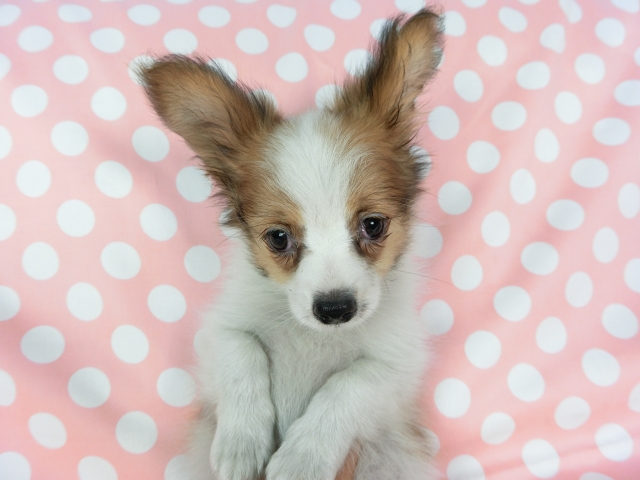 パピヨン ホワイト&レッドセーブル ♂(男の子) 千葉県【 ブリーダーズ 】