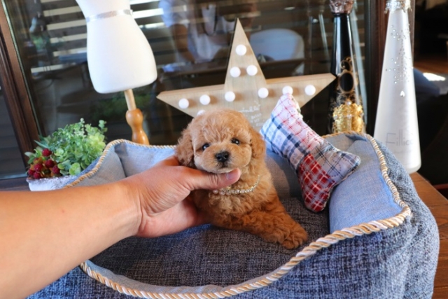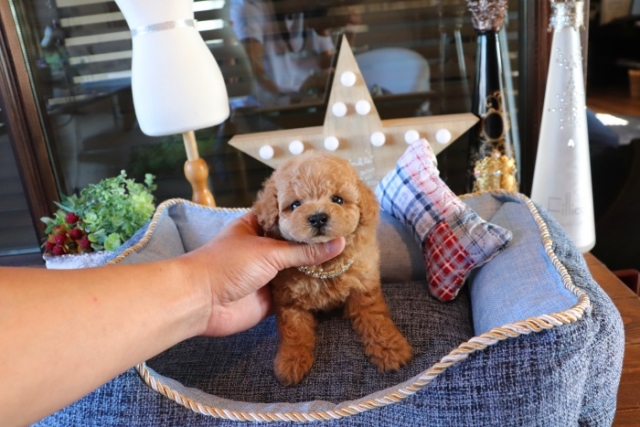 本日、我が家に小さな可愛い女の子のトイプードルがやって来ました。 遠距離という事もあり、暑い時期、飛行機の事なども心配していましだが、家に着いた途端、元気に走り、食欲も旺盛で、今まで大切に育てられてきたのだなぁ、ということがよくわかりました。 連休中にも関わらず、戸田様には、伊丹空港まで連れて来て頂き、こちらの質問にも的確に答えて下さいました。 大変信頼できるブリーダーです。 遠距離で悩まれている方も、安心して新しい家族を迎えられますよ。(兵庫県 男性)