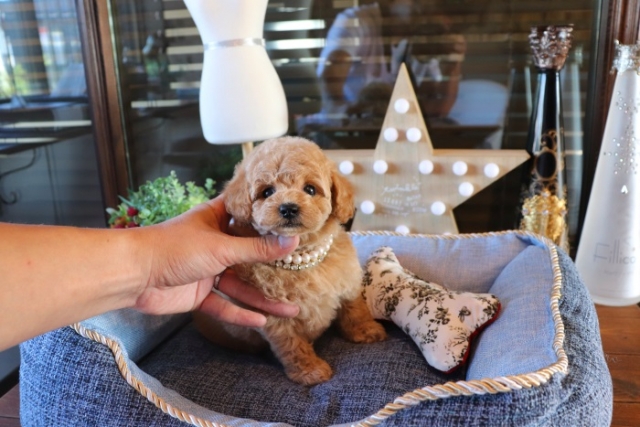 本日、我が家に小さな可愛い女の子のトイプードルがやって来ました。 遠距離という事もあり、暑い時期、飛行機の事なども心配していましだが、家に着いた途端、元気に走り、食欲も旺盛で、今まで大切に育てられてきたのだなぁ、ということがよくわかりました。 連休中にも関わらず、戸田様には、伊丹空港まで連れて来て頂き、こちらの質問にも的確に答えて下さいました。 大変信頼できるブリーダーです。 遠距離で悩まれている方も、安心して新しい家族を迎えられますよ。(兵庫県 男性)