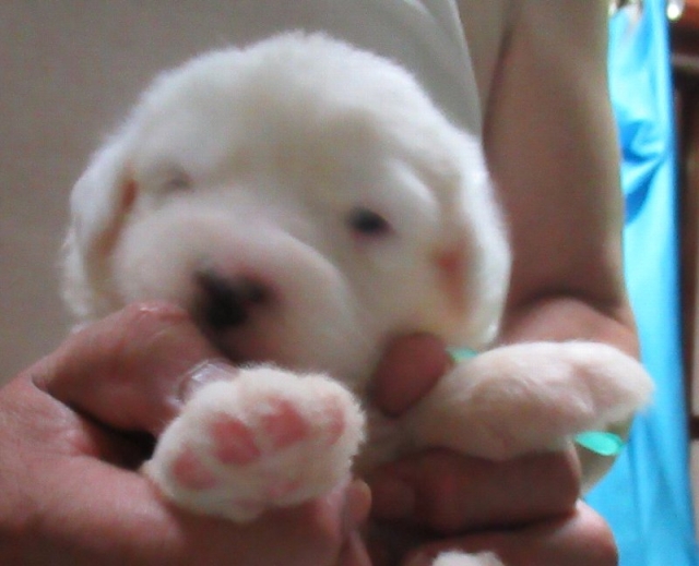 | コメント | お写真は生まれて3日目ですが、今はずっしりと重たく 幅が出ております。ワンちゃんとしては、とてもしっかりとした 良いワンちゃんです。 成長が楽しみなお坊ちゃまです。キレイなタイプなんだけど 可愛い男の仔だよ” これからがドンドンと大きくなるに付け楽しみな男の仔です。 今回の仔は甲乙付け難い位、粒が揃っております。 毎日が楽しみで癒されてます・・・ |