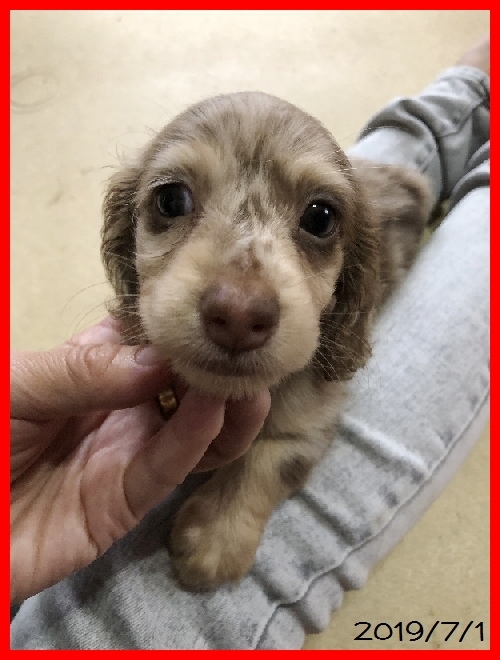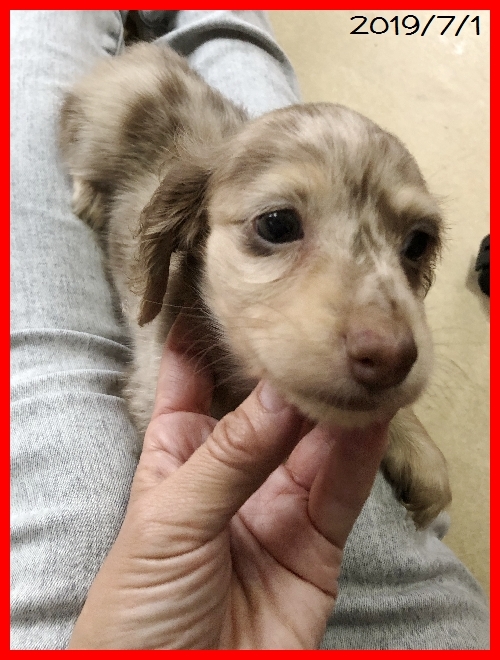 | コメント | パパはJKCチャンピオンの茶美太【ちゃみた】君(シルバーダップル) ママはJKCチャンピオン直娘の空星【クララ】ちゃん(チョコレート&イエロー) 両親共にとても良い子で、前回同じ組み合わせ手生まれた子達もとっても美人さんに成長しました。 毛色はチョコレート&イエローのチョコレートの部分がダップルです。 登録はチョコレート&イエロー、ダップルとなります。 全身にダップルの柄の入ったきれいな子犬ちゃんです。 PRA(遺伝性網膜委縮症)が発症する心配もありません。 お迎えいただけるのは2回目のワクチン接種と健康診断を実施後で、だいたい7月10日以降となります。 遠方の方はお届けも可能です。(別途お届にかかる費用が発生いたします。) お問い合わせをお待ちしております。 |