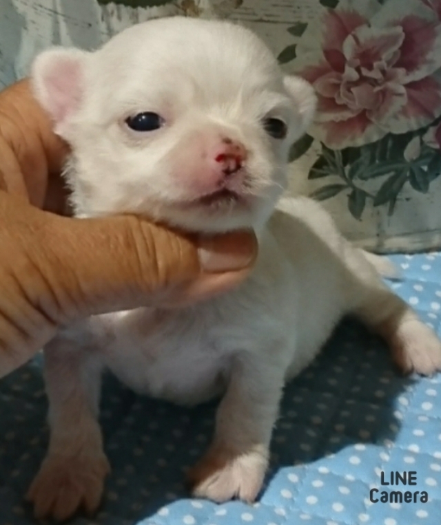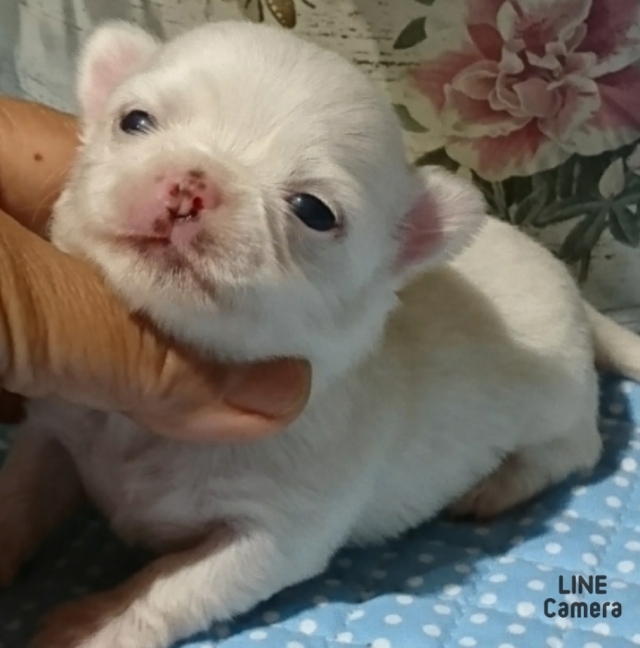 | コメント | 真っ白な女の子のご紹介です。 頭まん丸でお鼻もグチュっとしてて可愛い子です。 お鼻の色素は成長と共に出てきます。 パパもママも超~明るい性格ですよ~ 詳しくはお問い合わせください❗ |