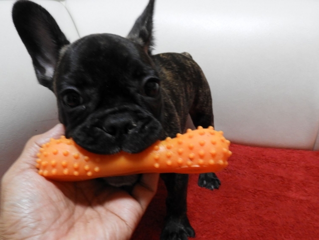 ずっとフレブルちゃん探しをしてましたが、やっと、この子と思える子に出会えました。ブリーダーさんも、とても気さくな方でしたので どんな質問でも聞きやすかったですし、また分かりやすく説明して下さいました!愛情いっぱいかけていただいてたので、我が家にきてからも、とてもお利口さんです。夜泣きも全くありませんでした。とてもとても可愛い子と出会えて、すごく今 幸せです。 (熊本県 女性)