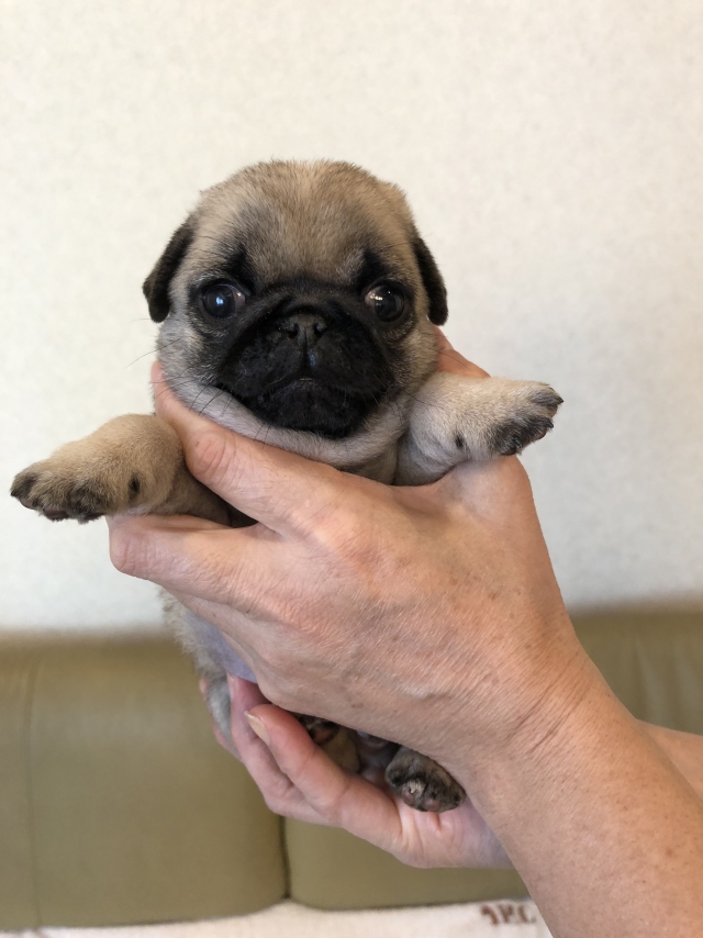 パグの飼育歴は30年以上になります。今年親の代から買っていた 黒パグを亡くしてから家を埋め尽くしているパググッズを見るたびに いつか新しい仔を迎えたいと思うようになりました。 北関東でブリーダーさんを探しているうちに木村様を知り、見学、購入の運びとなりました。 このたび性格も大変おおらかな素晴らしい仔犬をお譲りいただき大変感謝しております。 (茨城県 男性)