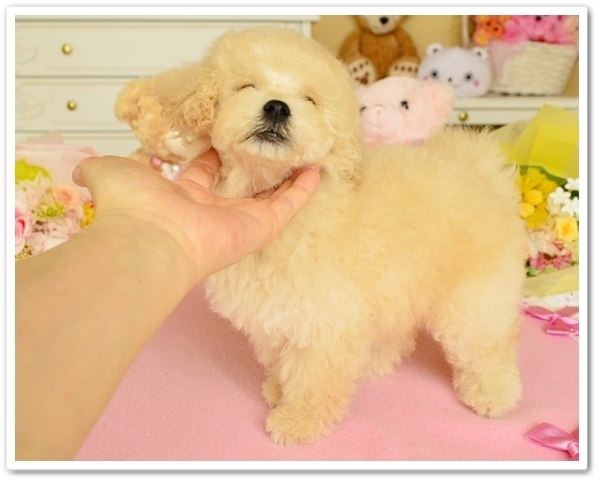 | コメント | ☆☆.。.:*・゜*:.。.毛量豊富!性格◎のクリームちゃん.。.:*・゜*:.。.☆☆ クリックリのまん丸おめめがチャームポイント 色素がとても濃くアイラインもくっきり おめめと鼻のバランスが良く、マズルも詰まっています 毛色は色斑のないクリームで、毛量・巻き・毛質ともに申し分なし 性格は元気でフレンドリー 無駄鳴きのない、人間大好き・わんこ大好きの甘えたさん ♥画像で見るよりもおめめが大きくてとても可愛いお顔ですヨ♥ ~~成犬時はティーカップ~タイニー小さめを予想します~~ 7月6日現在の体重:食後計測で960グラム(コロッコロしています) パパ1.6キロ、ママ2.5キロです 残留予定でしたが ほんの少~しアンダーショット(切歯のみ)になったので手放します カリカリフードも問題なく食べられますし 生え代わりで治る可能性があります とてもハイレベルな子犬なのでお勧めですよ 他には現時点で欠点等ございません PRA発症いたしません 東北自動車道水沢ICより15分、奥州スマートICより5分 東北新幹線水沢江刺駅から20分ですので ぜひご見学にいらしてください また、東京駅までの新幹線各駅出張いたします その際の出張費(新幹線代の半額と人件費5,000円)は お客様にご負担いただいておりますので ご理解いただきますよう、よろしくお願いいたします 東京以南のお客様には対面代行者にてご見学いただけますので お気軽にお問い合わせくださいませ よいご縁がございますように*:.。.☆☆.。.:*・゜*:.。.☆☆ |