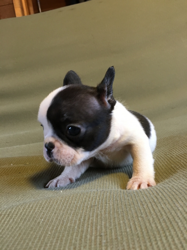 | コメント | 父親は毛色ブリンドル 母親は毛色パイド 小ぶりな男の子です。良く食べる元気な 子です。 家族の一員として可愛いがって頂けます方からのお問い合わせお待ちしております。 |