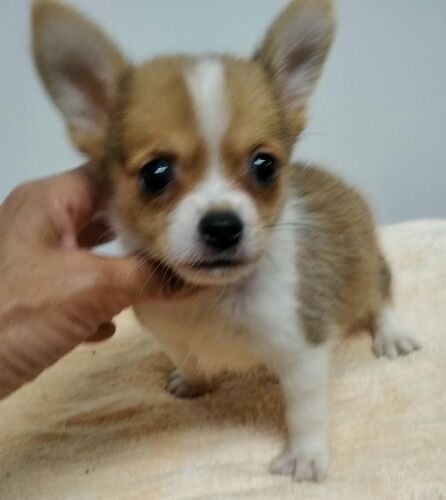 | コメント | 撮影日 2019年6月24日 父 チワワ×コーギー 母 チワワ 成体になったときの大きさ 標準体重 3~5kg 標準体高25~28cm ワクチン未接種(受けてからお渡しします。別途 6500円) |