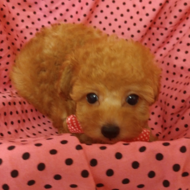 | コメント | ご覧頂きましてありがとございます。 パパ:レッド1.9kg ママ:アプリコット2.2kg 2019/7/3 現在の体重は700g 成犬時は2kg前後のティー~小さめタイニーサイズ予想です。 現在は親、兄弟、他の子達と元気に遊んでいます 断尾及び狼爪の切除はしていません。 当犬舎は20年近く営業していますので 安心して購入、相談出来ると思います。 |