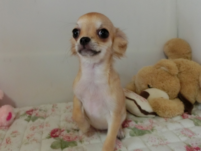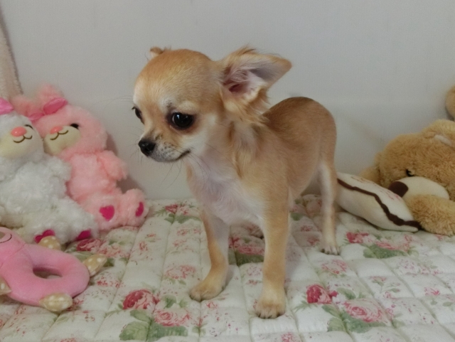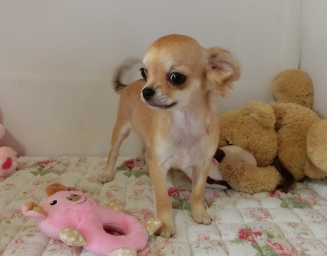 | コメント | アップルヘッドの可愛い女の子です。 黒い差し毛もだいぶ薄くなり綺麗なレッドになってきました。 今のところ、のんびりした性格の子です。 しっかりサイズの子なので初めてチワワを飼われる方やお子様がいるご家庭でも安心してお迎えできると思います。 離乳食も順調に進んでいます。 ワクチン2回済みました。(別途ワクチン代2回分かかります) 簡単な健康チェックも問題ありませんでした。 お写真ではこの子の可愛さが伝わり切れません。 とても可愛い子です♪是非ご見学にお越しください。 《お願い事》 まずは、子犬を飼う事をご家族で十分お話合いをされ、子犬をお迎えできる環境が整ってからのお問い合わせをお願いいたします。 お問い合わせ時に希望の子犬が決まっておらず、生まれている子犬全部を見たい等のご希望には添えかねます。 こまめな写真更新を心がけておりますが、 個別に新たな写真を希望される場合、子犬の向きや角度など細かなリクエストは撮影に時間がかかり子犬のストレスになりますのでご遠慮ください。 写真撮影は全くの素人ですのでどうぞご理解ください。 |