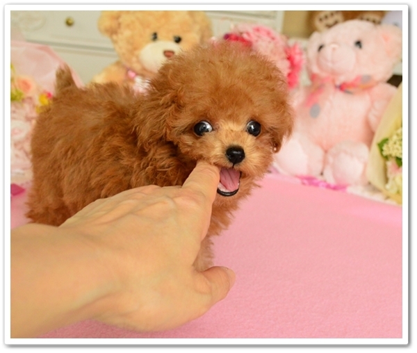 | コメント | ☆☆.。.:*・゜*:.。特大おめめの極小アプリ姫.。.:*・゜*:.。.☆☆ 目ヂカラのある大きなクリックリのまん丸おめめ 麦チョコ風味の小さなお鼻 色素が大変濃くアイラインもくっきり 離れ目で上向きの詰まったお鼻 体型はドワーフでショートバック 将来はベビーフェイスの激カワちゃんになる要素満載です 性格は元気でめちゃくちゃフレンドリー 人間大好き・わんこ大好きの甘えたさん ♥画像で見るよりもおめめが大きくてとても可愛いお顔ですヨ♥ ~~成犬時はマイクロティーカップを予想します~~ パパ1.8キロ、ママ2.4キロです かなり小さい子ですがフードを良く食べ 低血糖は一度も起こしたことがありません PRA発症いたしません 東北自動車道水沢ICより15分、奥州スマートICより5分 東北新幹線水沢江刺駅から20分ですので ぜひご見学にいらしてください また、東京駅までの新幹線各駅出張いたします その際の出張費(新幹線代の半額と人件費5,000円)は お客様にご負担いただいておりますので ご理解いただきますよう、よろしくお願いいたします 東京以南のお客様には対面代行者にてご見学いただけますので お気軽にお問い合わせくださいませ よいご縁がございますように*:.。.☆☆.。.:*・゜*:.。.☆☆ |