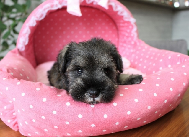 シュナウザーを主力にされているブリーダーさんだと認識しており、ボスちゃんはどうかなあと正直不安でしたがとても可愛く健康的なボスちゃんをいただきました。 掲載されていた写真より実物は想像以上に可愛くて即決し見学させていただいたその日に連れて帰りました。連絡をして、翌日行きますぅって勝手な申し出にも関わらず敏速かつ親切に対応して頂き大満足です。契約に対しても一つ一つ丁寧に説明してくださり、わかりやすかったです。この度は可愛いボスちゃんとのご縁をいただき、本当に有り難うございました。 (大阪府 女性)