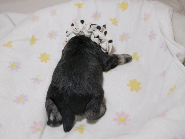 この度はとっても元気な子をありがとうございました。 見学の際は駅まで迎えにきていただき、説明もとても丁寧で安心しました。 空輸で送っていただき、ありがとうございました。 迎えてから一週間が経ち、家にも慣れて、へそ天で寝ています。 トイレトレーニングも、来た時から8割できていて、今ではほとんど失敗しなくなりました。 可愛く元気で、毎日元気に飛び跳ねています。(奈良県 女性)