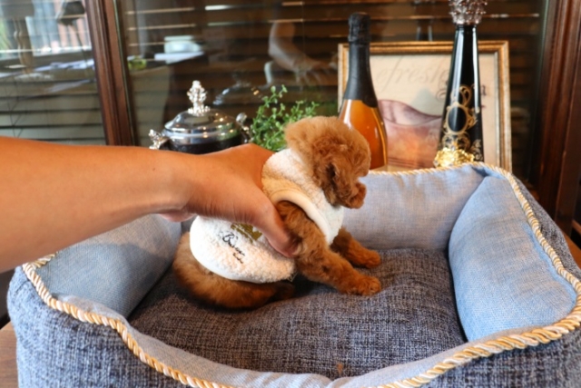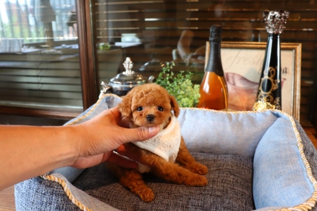 本日、我が家に小さな可愛い女の子のトイプードルがやって来ました。 遠距離という事もあり、暑い時期、飛行機の事なども心配していましだが、家に着いた途端、元気に走り、食欲も旺盛で、今まで大切に育てられてきたのだなぁ、ということがよくわかりました。 連休中にも関わらず、戸田様には、伊丹空港まで連れて来て頂き、こちらの質問にも的確に答えて下さいました。 大変信頼できるブリーダーです。 遠距離で悩まれている方も、安心して新しい家族を迎えられますよ。(兵庫県 男性)